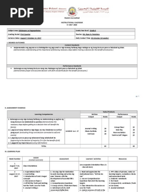 Edukasyon Sa Pagpapakatao Esp Grades 1 6 Daily Lesson Log