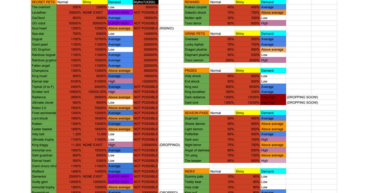 Value Chart Newly Improved Fandom