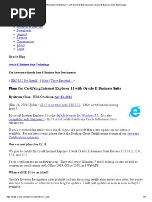 Plans For Certifying Internet Explorer 11 With Oracle E Business