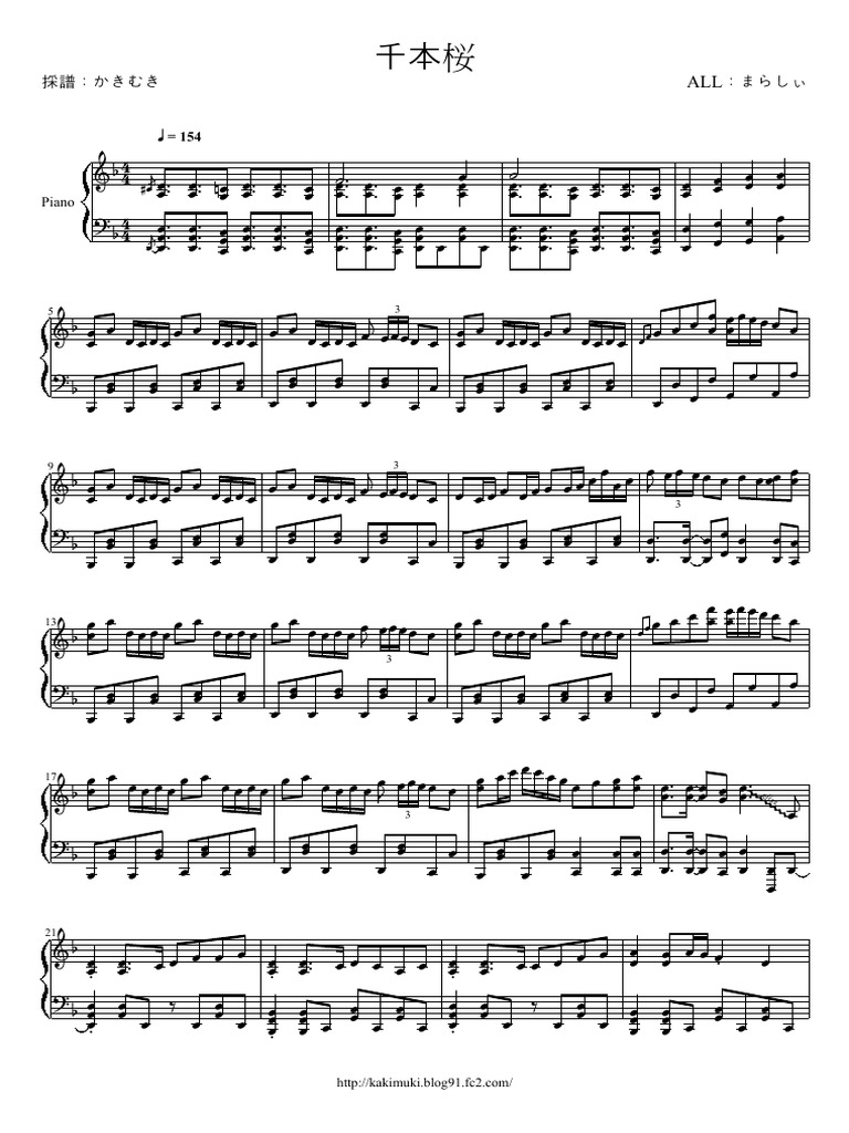 Sheet Music Senbonzakura Senbon Zakura Chamber Music Piano I Love